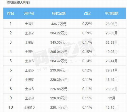 这十大“土豪”就在平台“善林财富”上投资了约3000万元。