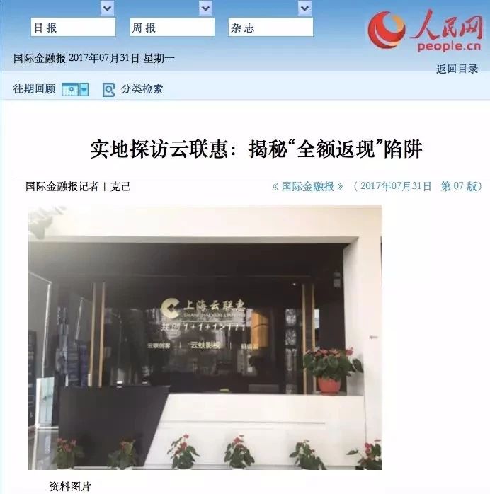 《国际金融报》去年7月也曾报道称,云联惠客服人员表示,实际返还速度为每日0.03%至0.06%,具体根据平台每日收益调整,最终返还时间无法确认。