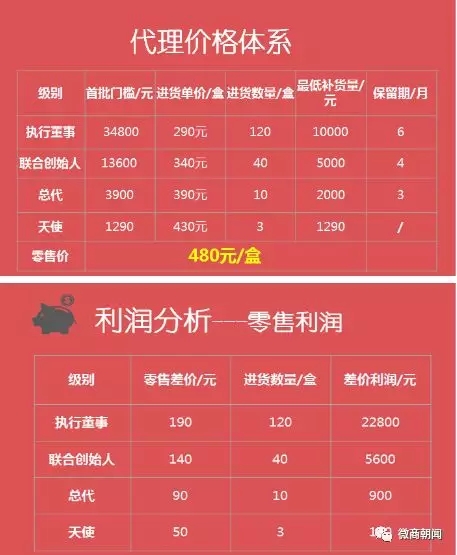 记者通过该版块提供的微信号,联系到一位微信昵称为“大仙儿”的负责人,咨询如何成为该产品代理。该负责人表示,代理等级由高到低。依次为:执行董事、联合创始人、总代和天使代理。获得相应资格的门槛金额依次为34800元、13600元、3900元和1290元;进货单价依次为每盒(约500克)290元、340元、390元和430元;商品零售价为每盒480元。