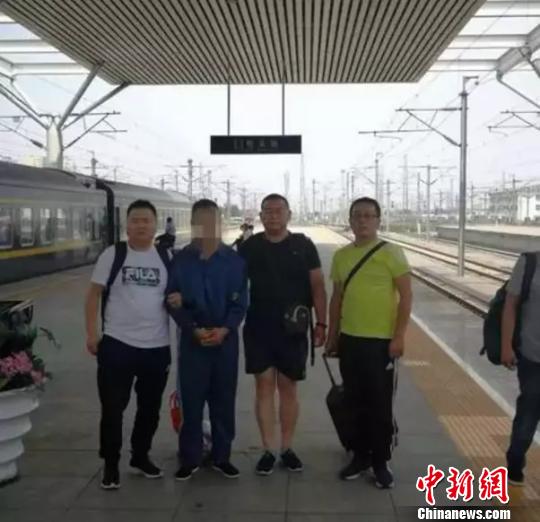 图为警方将孟某某押解回乌拉特前旗。 警方供图