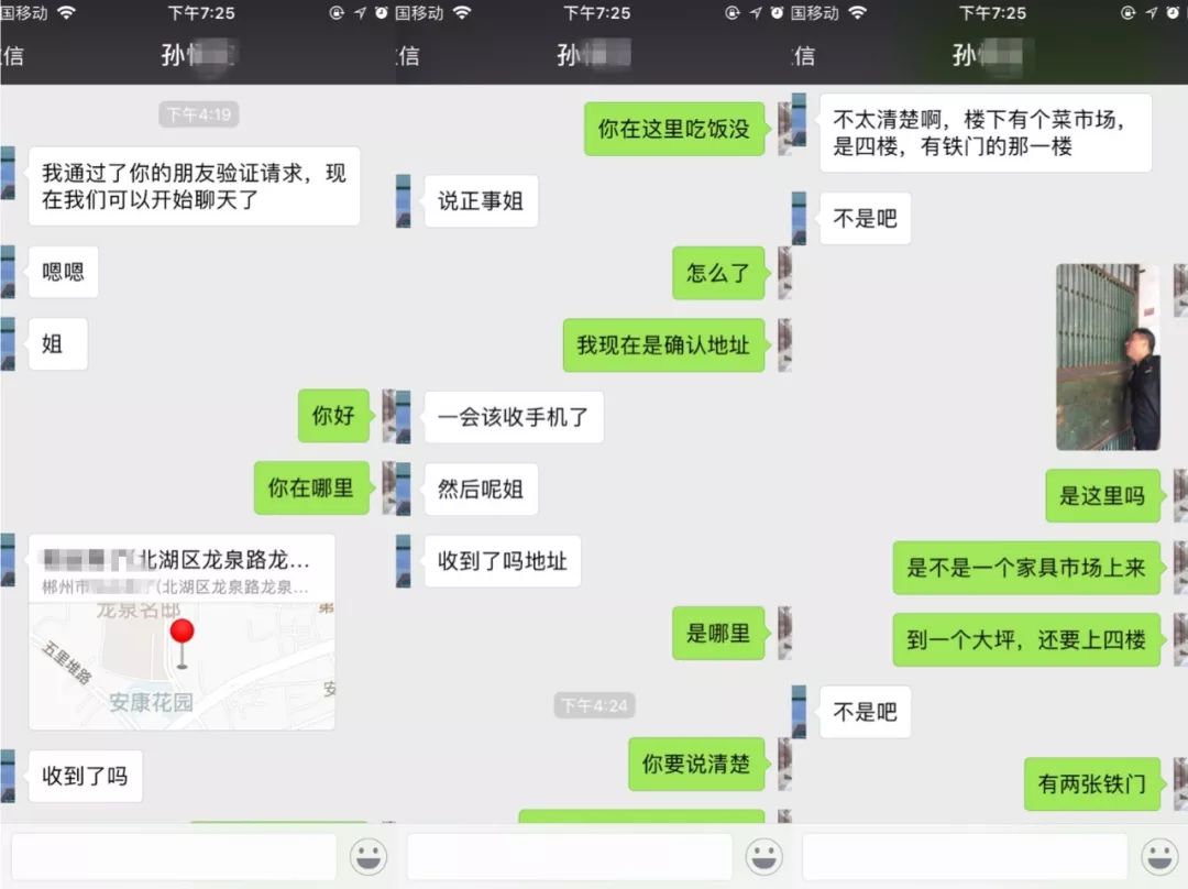 陈琳与受害人宋某的聊天记录就是根据文章开头的这7秒视频,陈琳与胡军立刻分析出了受害者所在区域,并锁定某小区某单元四楼。当陈琳赶到该单元楼三楼时,被一道铁门挡住,由于之前与宋某交流时提到过“铁门”,陈琳坚信宋某就在此处。周边居民也告知,四楼有一户是出租户,长期有陌生年轻男女出入。陈琳立即向所领导汇报,并请求支援。
