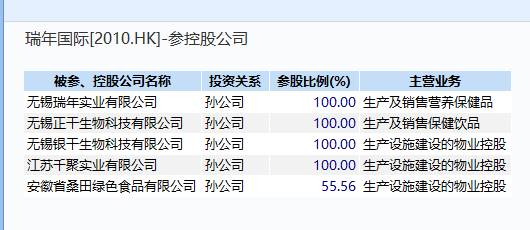 地处无锡的瑞年国际2010年在港上市,主营氨基酸保健品业务,无锡瑞年实业是旗下公司之一。