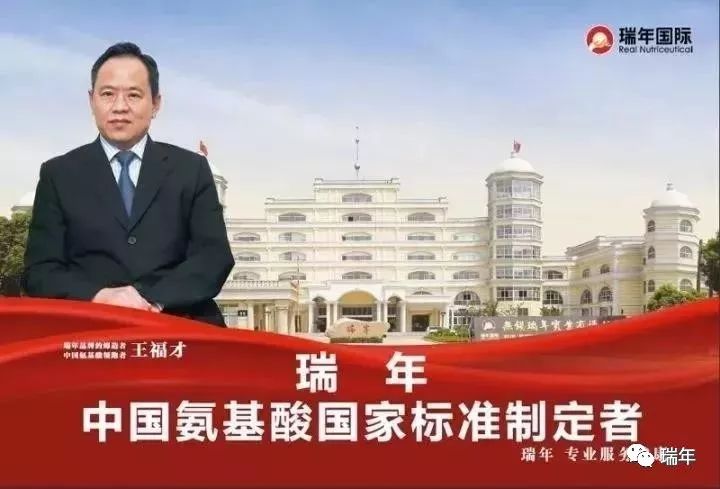 瑞年国际董事长叫王福才,对外宣称是“中国氨基酸教父”。从1997年创立“瑞年”品牌到现在,氨基酸一直是他和瑞年国际有限公司的名片。