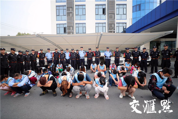 图片说明:9月19日凌晨,南京市公安局江北新区分局会同浦口分局,对南京桥北地区非法传销窝点开展集中收网行动,查获涉嫌传销成员532名。