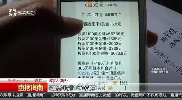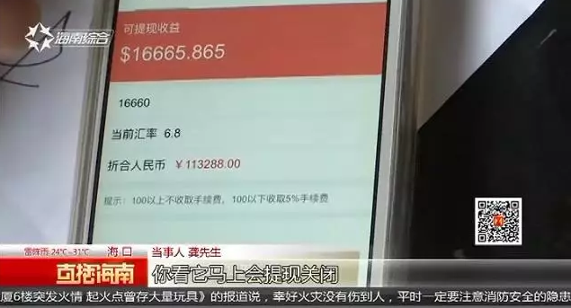 今年4月份,家住海口的龚先生在朋友的推荐下,进入了一个理财投资项目。投资后的第三天起,他就可以提取现金。可连续提取了三天现金后,龚先生发现这项目的收益高得离谱。担心有风险他就想退出,然而,已经来不及了。