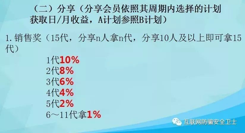 也就是说,在“未来E购”消费可以获得大约11倍的回报,消费返利此举已经涉嫌非法集资。同时,该商城还鼓励会员积极拉人头,并按层级给予其拉人头的提成,根据层级不同提成不一,层级最高达到了15个代理层级,已经涉嫌传销行为。