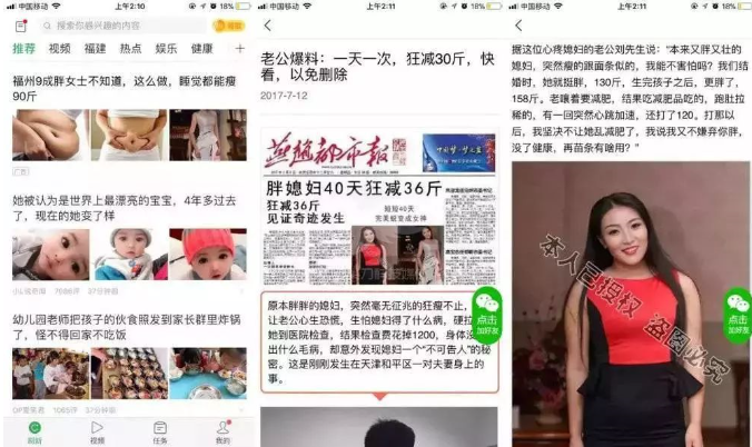 可事实上,趣头条真的这样做了吗?据小编观察,趣头条不但没有在内容上改进提升,反而不断加码“狗皮膏药”式的广告,不管是哪个频道,每刷新一次更新十条信息,就会出现两至三条广告。妇科、男科、保健品类广告、地产、租房、减肥广告,应有尽有,无处不在,甚至还有一些疑似莆田系医疗广告和一些老掉牙的“电视购物”广告。