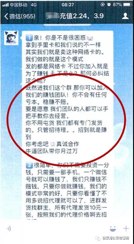 收到货后,张女士却发现这些卡根本无法给手机充值。张女士找对方质问,可是让她大跌眼镜的是,对方竟然一口承认他们就是“骗子”,还游说张女士加入他们的“骗子大家庭”,不仅可以挽回损失,还能一起“创业致富”。