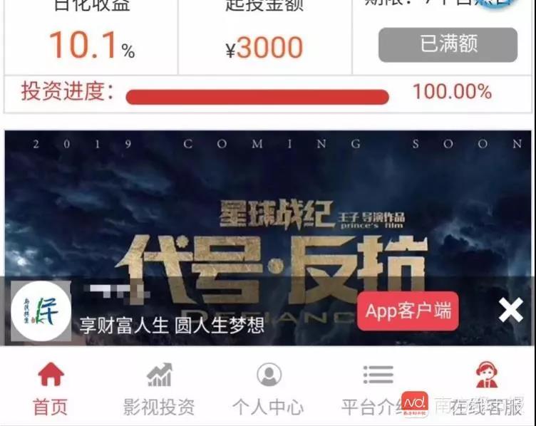8月初,罗先生偶然在某微信公众号上看到了一条投资广告。“说是有一款理财产品,我们可以投资电影成为会员,回报率很高,客服介绍现在的投资人数有40多万。”