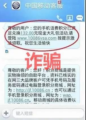 短信冒充中国移动10086,进行诈骗