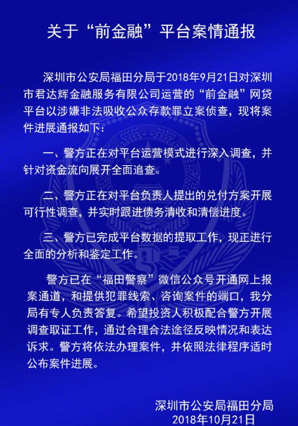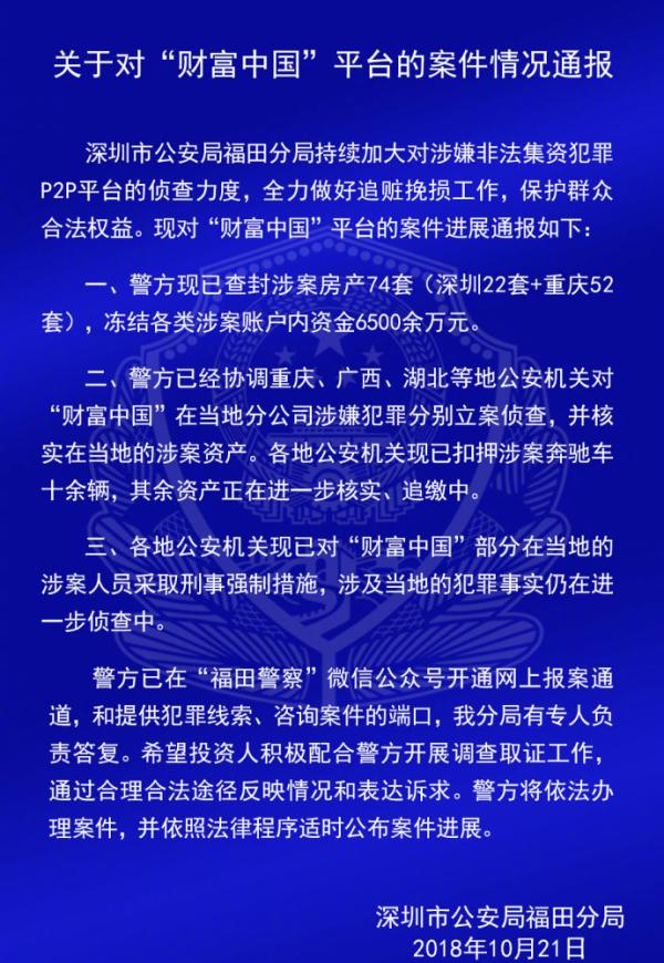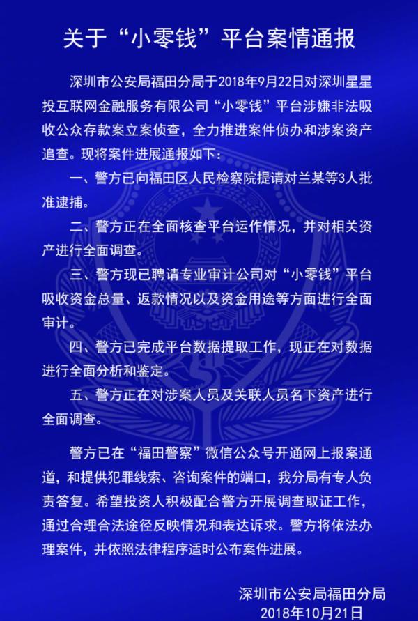 深圳警方通报钱爸爸、小零钱、财富中国等7家P2P平台案情
