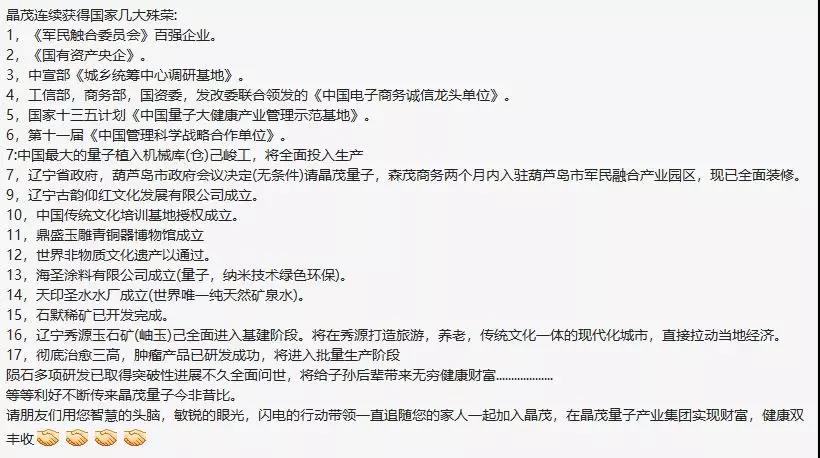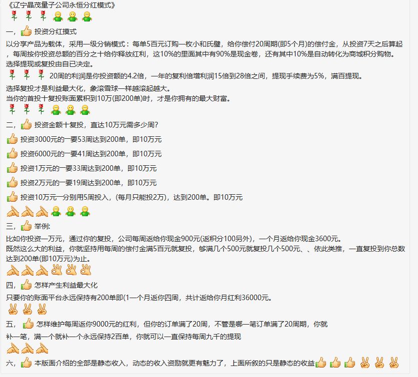 《辽宁晶茂量子公司永恒分红模式》