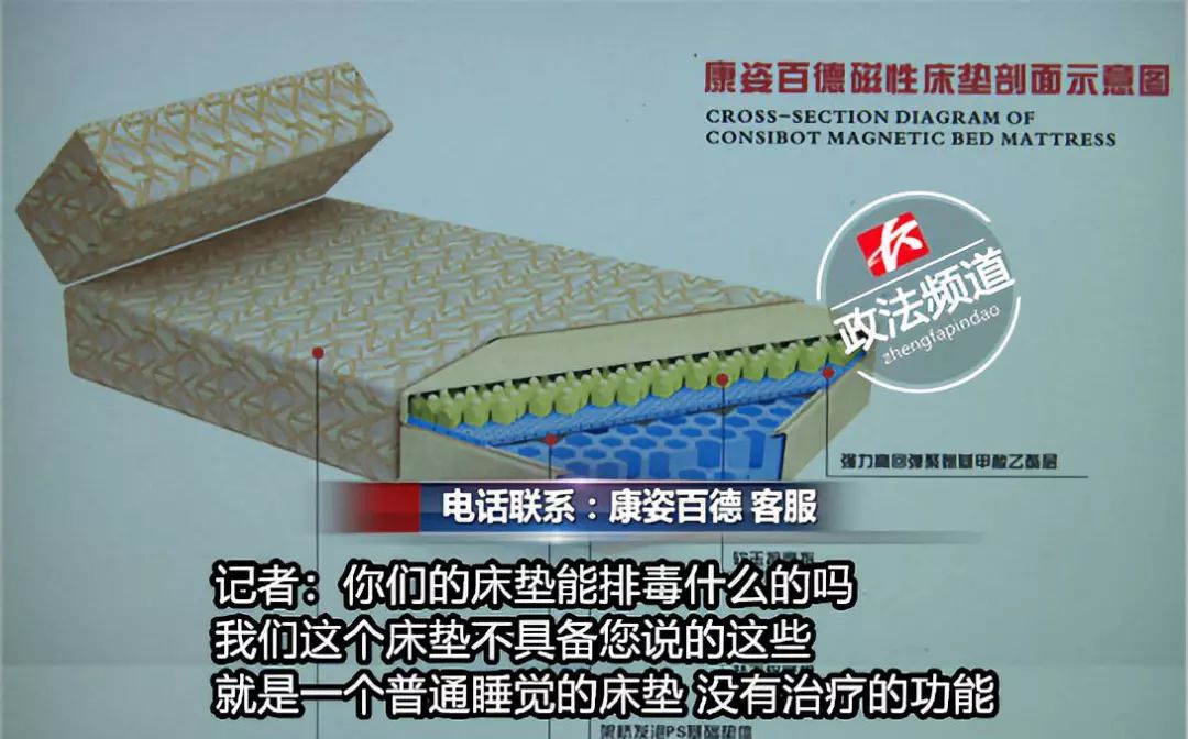 排毒、治未病,这款神奇的磁疗床垫真的有这么神奇的功效吗?特攻记者通过查询康姿百德官方网站发现,在产品介绍中并没有提到这款磁疗床垫有任何的治疗保健功效,只是一款普通的寝具。该公司的客服也证实了这一说法。