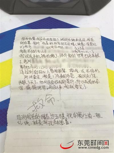 经了解,报警的,是一名男子和附近工业园的一名保安。随后,该男子向铁骑队员提供了一张纸条,纸条上写着:“帮我报警,我应该进传销了,被朋友骗来这边……”