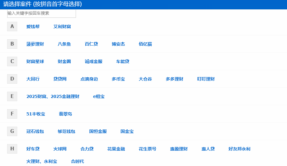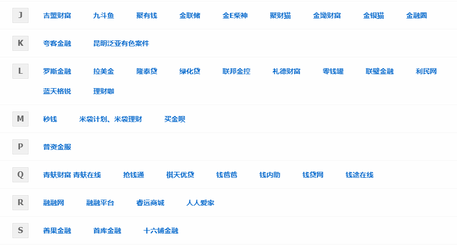 本次新增平台包括菠萝理财、财富星球、大同行、2025财富、2025金融理财、冠石钱包、惠人贷、吉盟财富、罗斯金融、拉美金、融融网、58车贷、贤钱宝、壹宝贷、豫商贷、银豆网、有利金服、赚吧理财、赚吧金服、砖头网、中再融、中融乐投。