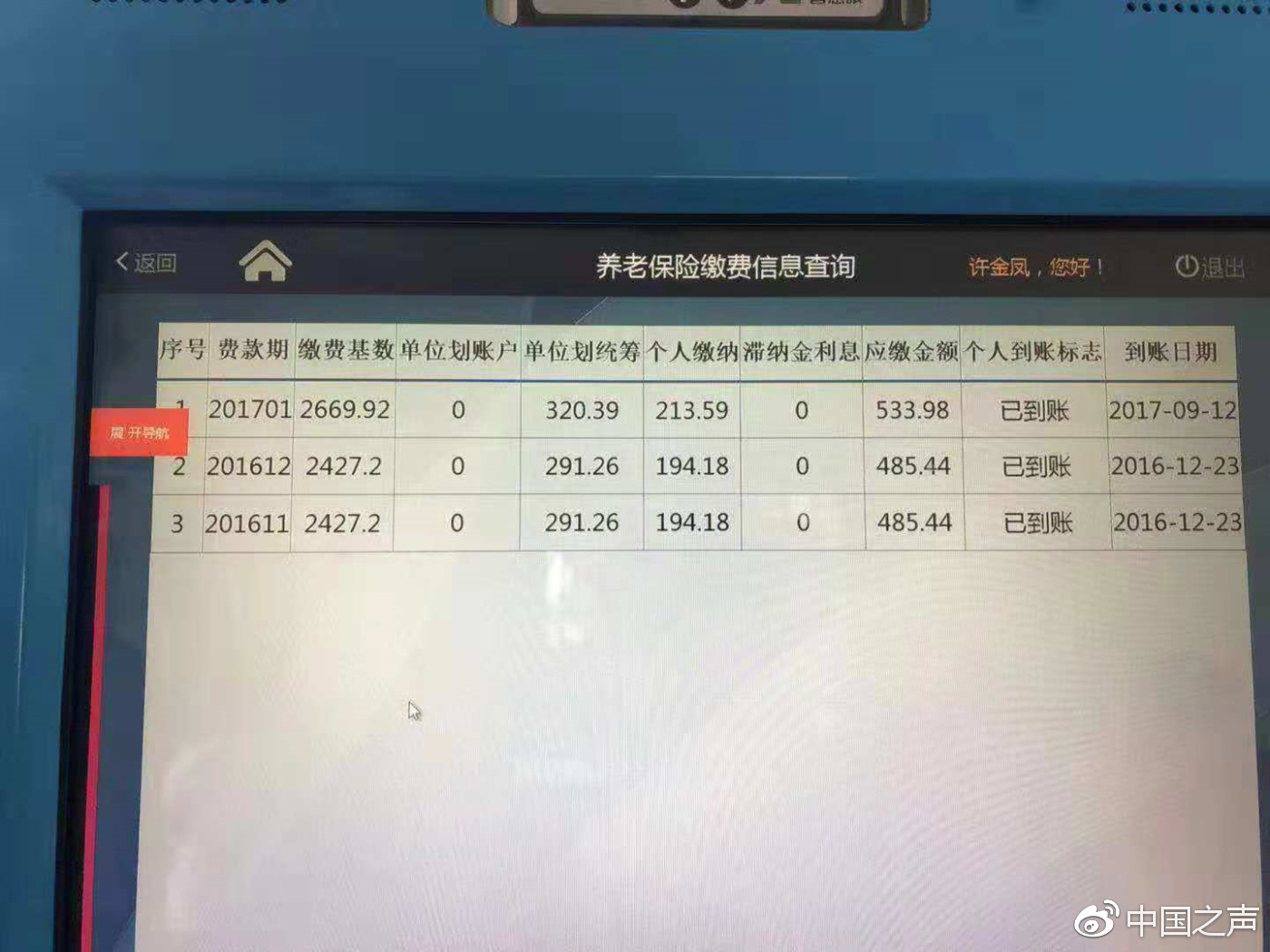 许金凤查询社保系统显示,她只有三个月的社保缴费记录