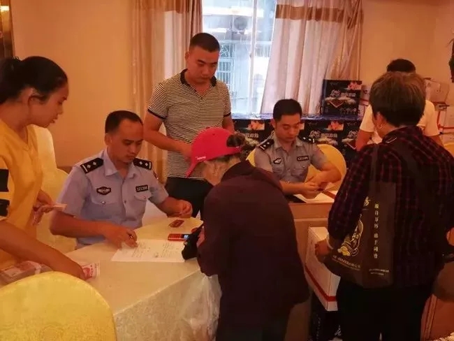 经审查,民警查明这是一个四川籍无业人员组成的诈骗团伙,他们冒充为28家爱心企业来安化做产品宣传、打广告、献爱心,以免费送面条、鸡蛋、洗衣粉等手段吸引大量的老年人前来参会。之后抓住老人盼望养生、渴望长寿的心理和容易受骗的特点,在会场上向老人们大肆进行蛊惑与推销,如原浆酒扫码价6666元一坛(实际进价为180元),金镶玉手镯6880元一个(实际进价为48元),天鼎元素服3980元一件(实际进价为60元),“包治百病”的神奇药膏39.8元一支(实际进价格1.8元)等,以夸大功效和售价虚高的产品来骗取老年人的钱财。为使自己的表演更加充分,诈骗团伙成员还组织老年人在活动现场抽奖,目的就是要吸引更多的老年人带现金来参加活动。到活动最后几天,向老年人推销老年人有购买能力的高价产品。从9月14日至21日,在安化短短逗留几天,他们就骗得现金52万余元,受害老年人达180余人。