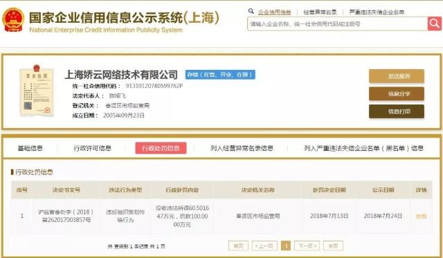 处罚时间:2018年7月13日