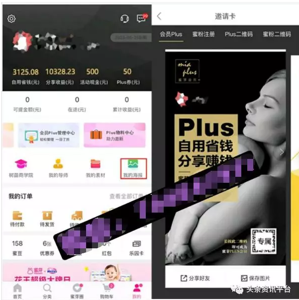 (2)旗下所有plus发展一名Plus,公司直接给你奖励150元现金。每人都可以在我的海报处生成自己专属邀请码,如图: