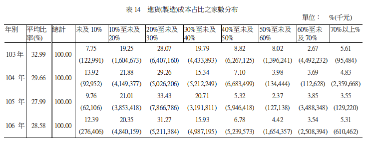 ②目前,台湾部分部门仍采用中华民国历纪年方式。这种纪年方式以公元1912年壬子年中华民国成立为第1年,即中华民国元年,与公元纪年相差1911年。本文表格出现的106年、105年等即民国106年、105年,换算成公元年份,即民国106年是公元2017年、民国105年是公元2016年,以此类推。