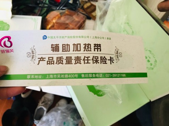 女儿周女士展示的瘦瘦包,也是由一个辅助加热带和多包150g 的养森—亿康外敷包组成。但事发后,记者联系一张产品(辅助加热带)质量责任保险卡上的售后电话,却发现接听的是上海彩阳电热毯有限公司的客服,客服表示,公司只参与瘦瘦包的部分零件制作,不支持任何售后,而拨打药包上的电话,也无人接听。