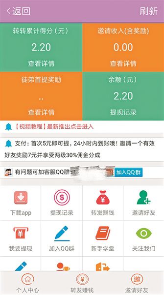 转发一条一次点击0.1~0.2元的微利真的能带来一个月上千元的收益?记者通过一网赚平台的用户QQ群联系到一位经验颇丰的用户。“我朋友圈有300个好友,上个月赚了1400元。”在他看来,做得差时月入有几百元,月入千元并没有难度,前提是要摸清门道。