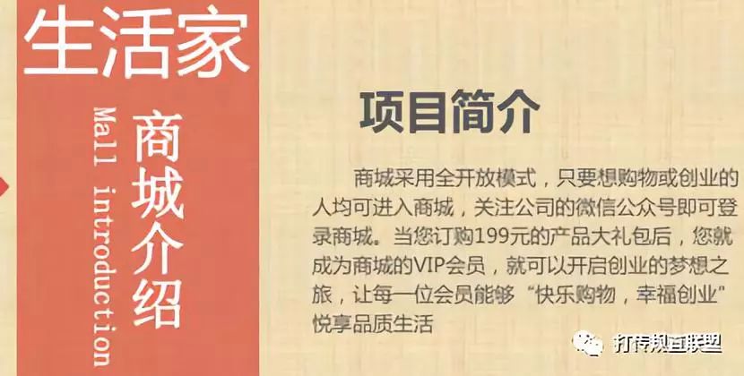 近日,本网注意到一家自称发展不同层代理就能致富的平台——生活家商城。随后,本网联系到一位自称“生活家”商城的代理商,该代理商告诉本网,“只要一次性购买1个199小礼包,即可成为199VIP会员;一次性购买1万元的大礼包,即可成为商城店主”。