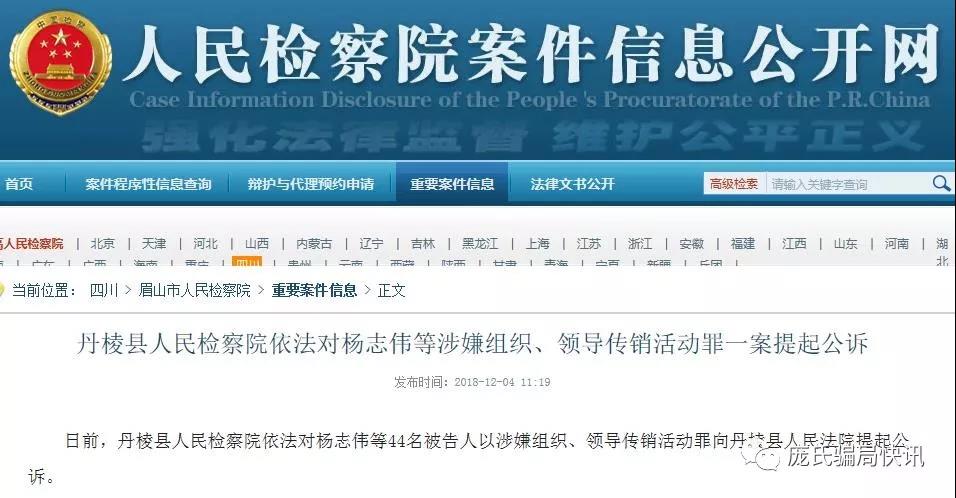 日前,丹棱县检察院对杨志伟等44人以涉嫌组织、领导传销活动罪向丹棱县法院提起公诉。