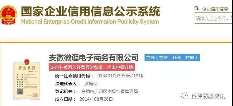 庞氏骗局快讯通过国家企业信用信息系统查询得知,2014年8月26日廖海保、魏洪云二人在肥市庐阳区市场监督管理局注册成立安徽微逛公司,注册资金1000万元,实缴资金60万元,公司地址在庐阳区阜阳北路骏豪华庭。