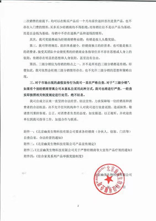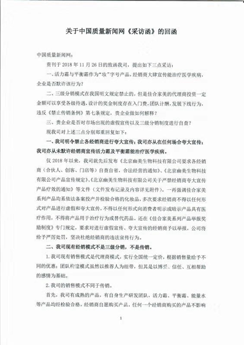 随后,本网发给北京幽美生物科技有限公司一份采访函,提出相关的疑问,以下是回函。