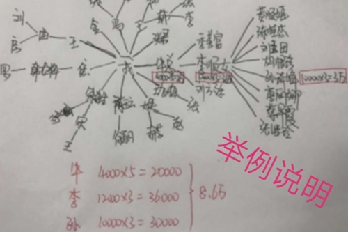 什么是“533”的概念呢?该代理商解释道:“直推一代公司奖励5元,2000瓶×5元=10000×5人=50000元;直推第二代公司奖励3元,2000瓶×3元=6000×25人=150000;直推第三代公司奖励3元,2000瓶×3元=6000×125人=750000元,这样复制5个合伙人,可以达到月收入95万。”