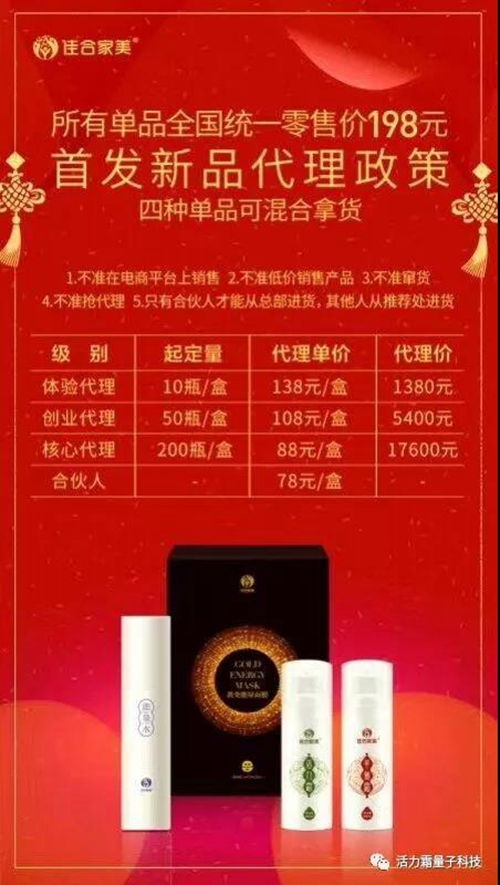 佳合家美活力霜宣传能治多种疾病并涉嫌传销