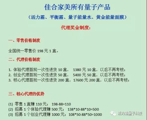 该代理商还颇显神秘地告诉本网一个抓住“财富”的机会,那就是加入佳合家美共享财富,随后给本网发了一套致富的奖金制度。