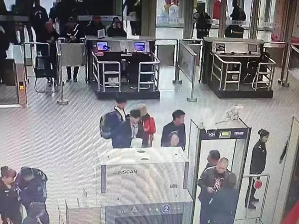 监控显示,多名男性跟随小雪(图中红色上衣者)在银川火车站出现,乘车前往河北。