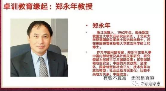 多个宣传材料中称,卓训网2004年在新加坡国立大学商学院创立,创立缘起则是著名的中国问题专家、新加坡国立大学东亚研究所所长郑永年教授对国人文化素质的担忧。