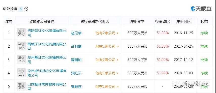 新浪潮注意到,根据卓训网官网公开的公司结构图,洛阳圣训、漯河智训均为其分公司。
