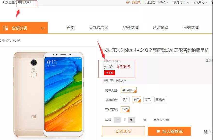 中销联合主平台中销商城,随意点开网站上的商品(红米5plus)售价,与小米京东自营旗舰店对比价格足足高出了3倍。中销联合的这种高标价行为违反了《中华人民共和国价格法》第七条规定:经营者定价,应当遵循公平、合法和诚实信用的原则。