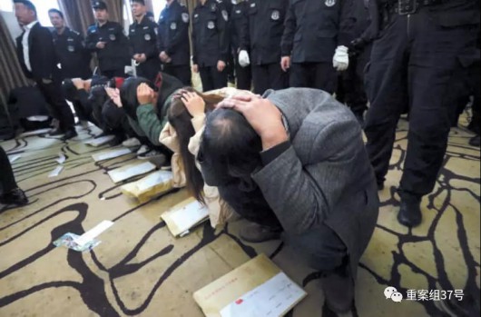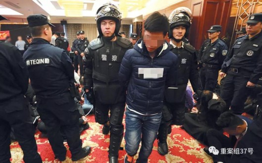 ▲2018年12月8日,江苏南通警方在一酒店抓获正在开会的传销团伙。警方供图