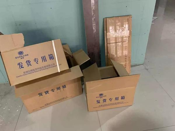 权健郑州分公司仓库门口的空纸箱