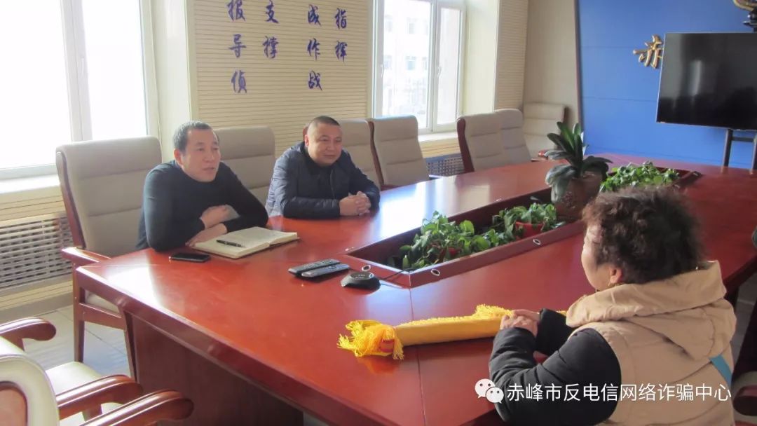 1月8日,受害人持感谢锦旗,到赤峰市公安局刑警支队,向反诈中心民警及时预警拦截表示由衷地感谢。刑警支队及反诈中心领导会见了受害人,向其讲解了多种常见类型电信诈骗案件,并再次叮嘱于女士接到陌生来电需时刻保持清醒,切勿向对方提供银行卡号、密码、短信验证码等重要个人信息,一旦被骗立即拨打110或反诈中心电话0476-8899988报警。