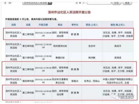 2019年2月12,“悦花越有”特大网络传销案在沾化区人民法院第三法庭开庭审理。