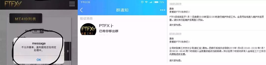 据与期货日报记者接触的投资者反映,PTFX近些日子出金突然变慢,甚至出现提现请求被拒绝的现象,而所谓的“***”也各有各的说辞,在群里只要有对PTFX的质疑就会被踢出群,有一些会员群则被全体禁言。
