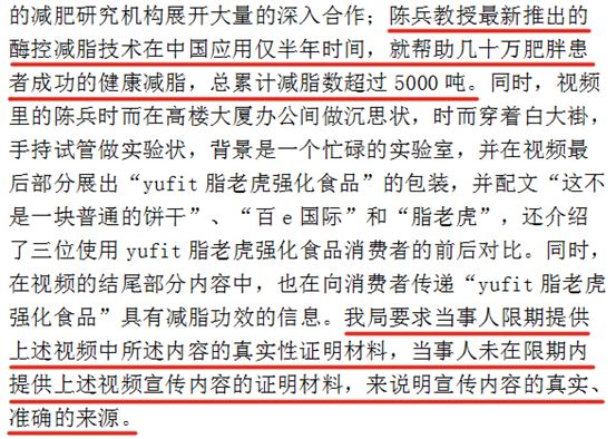 杭州市市场监管局经开分局让脂老虎公司提供视频宣传内容的证明材料,来说明宣传内容的真实、准确的来源时,这个公司一下子认怂了。