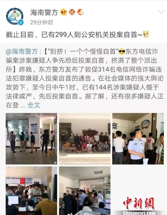 海南警方敦促诈骗嫌疑人自首,一天内299人投案挤满派出所