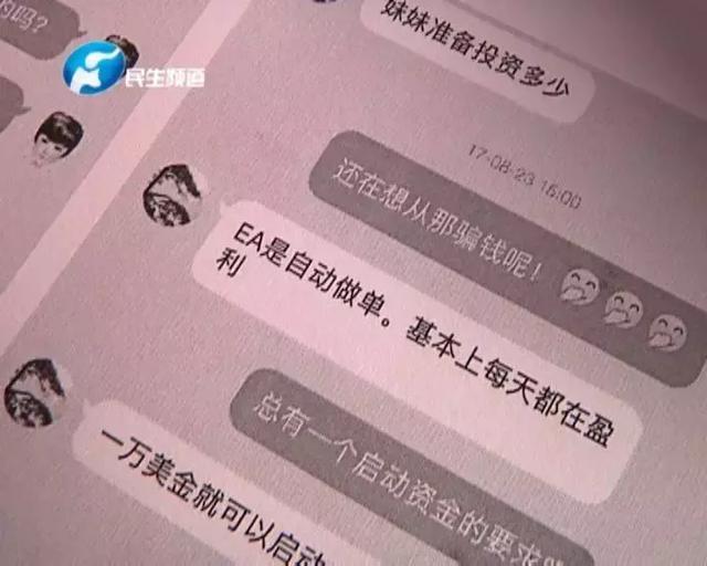 等到男女双方越聊越投机,男方就会露出狐狸尾巴,诱骗女方一起在一款名为“EA”的交易平台上炒外汇。