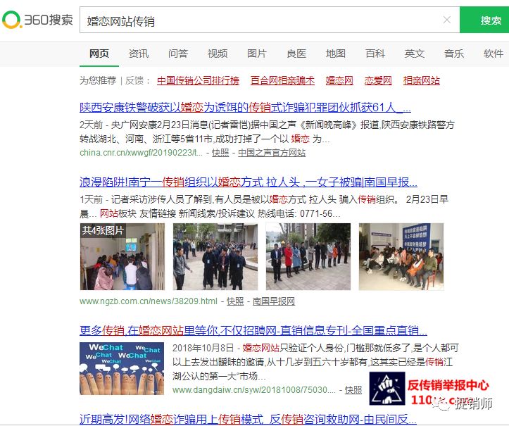 传销组织拉人头首先会以“至亲、至爱、至友”三条线发展自己的下线,但是这三条线的市场很容易就会被破坏掉,于是在互联网上的婚恋交友网站成为其发展下线的目标。