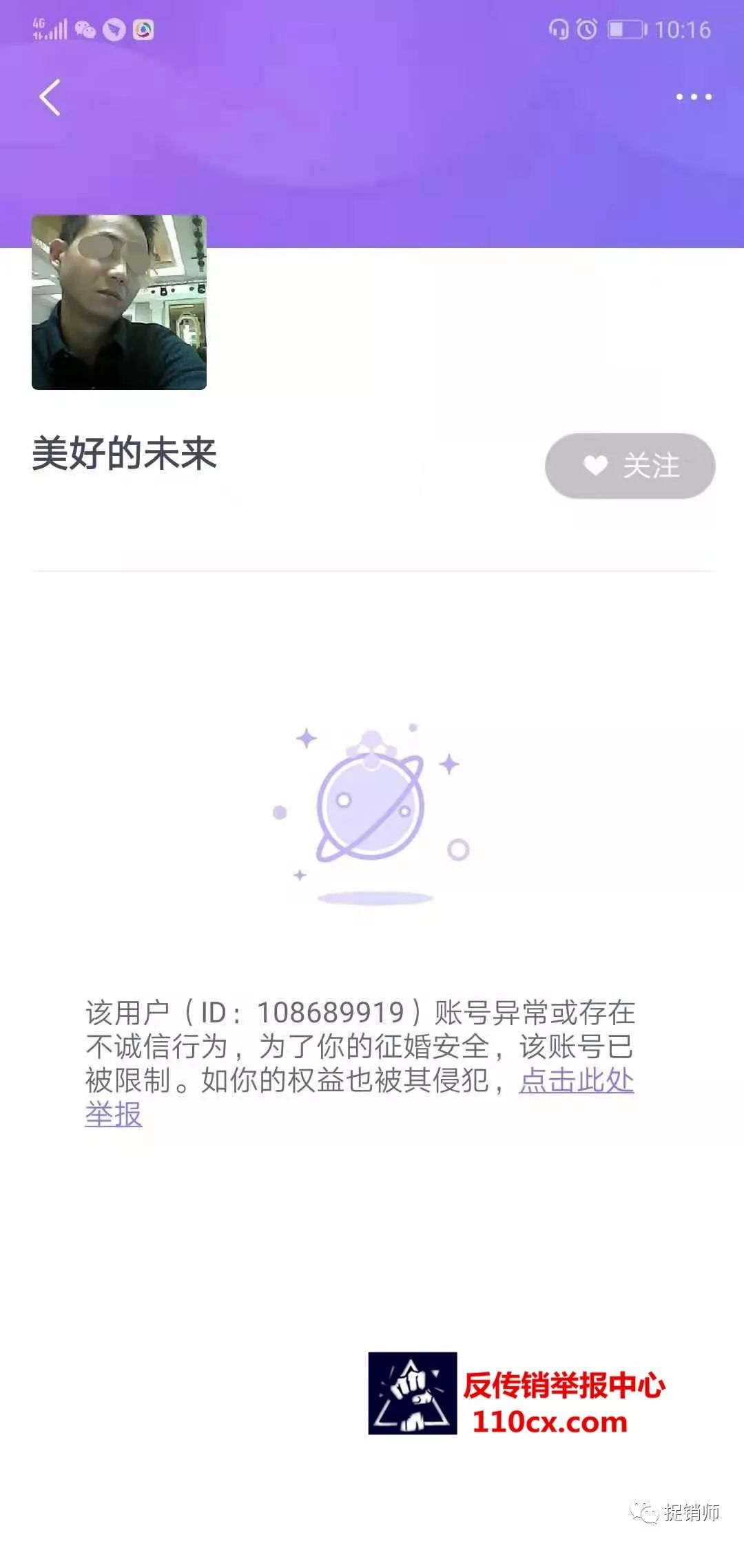 混迹于婚恋网站的金某珍爱网账号已被屏蔽