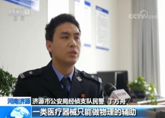 济源市公安局经侦支队民警 丁方舟:一类医疗器械只能做物理的辅助,升温、降温等辅助作用,不能用于治病。另外,一类医疗器械里面是不可以含任何中药西药成分的。