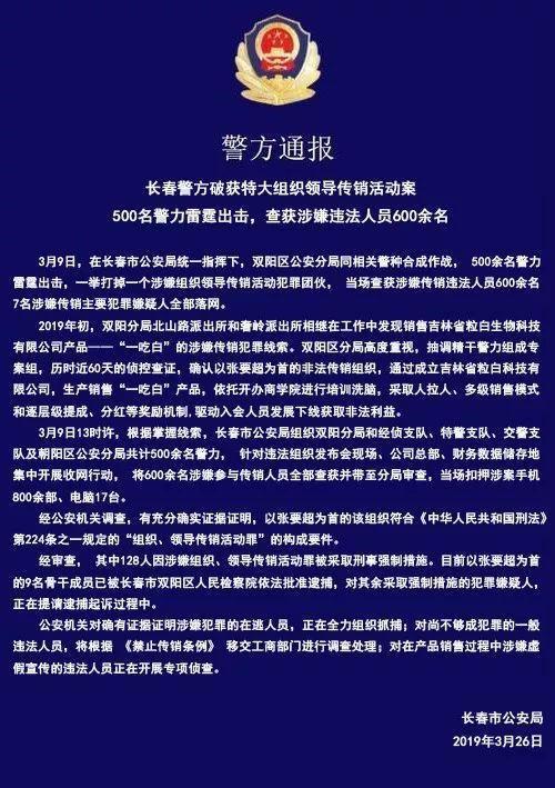 吉林长春破获“一吃白”特大传销案,128人被采取刑事强制措施