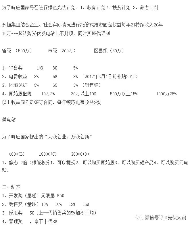 这里不得不提永恒太阳能公司的一个项目——“微云计划,造福天下”,号称“只要地球太阳在,就有永恒太阳能”,就连公司办公楼里也挂满了各种荣誉证书。